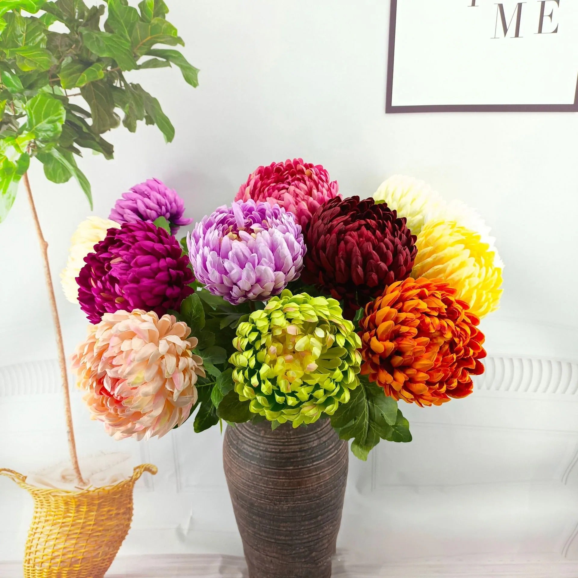 Sublimez vos intérieurs avec cette fleur artificielle de chrysanthème conçue pour reproduire toute la délicatesse et l’élégance des fleurs naturelles. Choisissez entre un style ouvert éclatant ou fermé plus sobre, et composez des arrangements qui correspondent à vos envies.